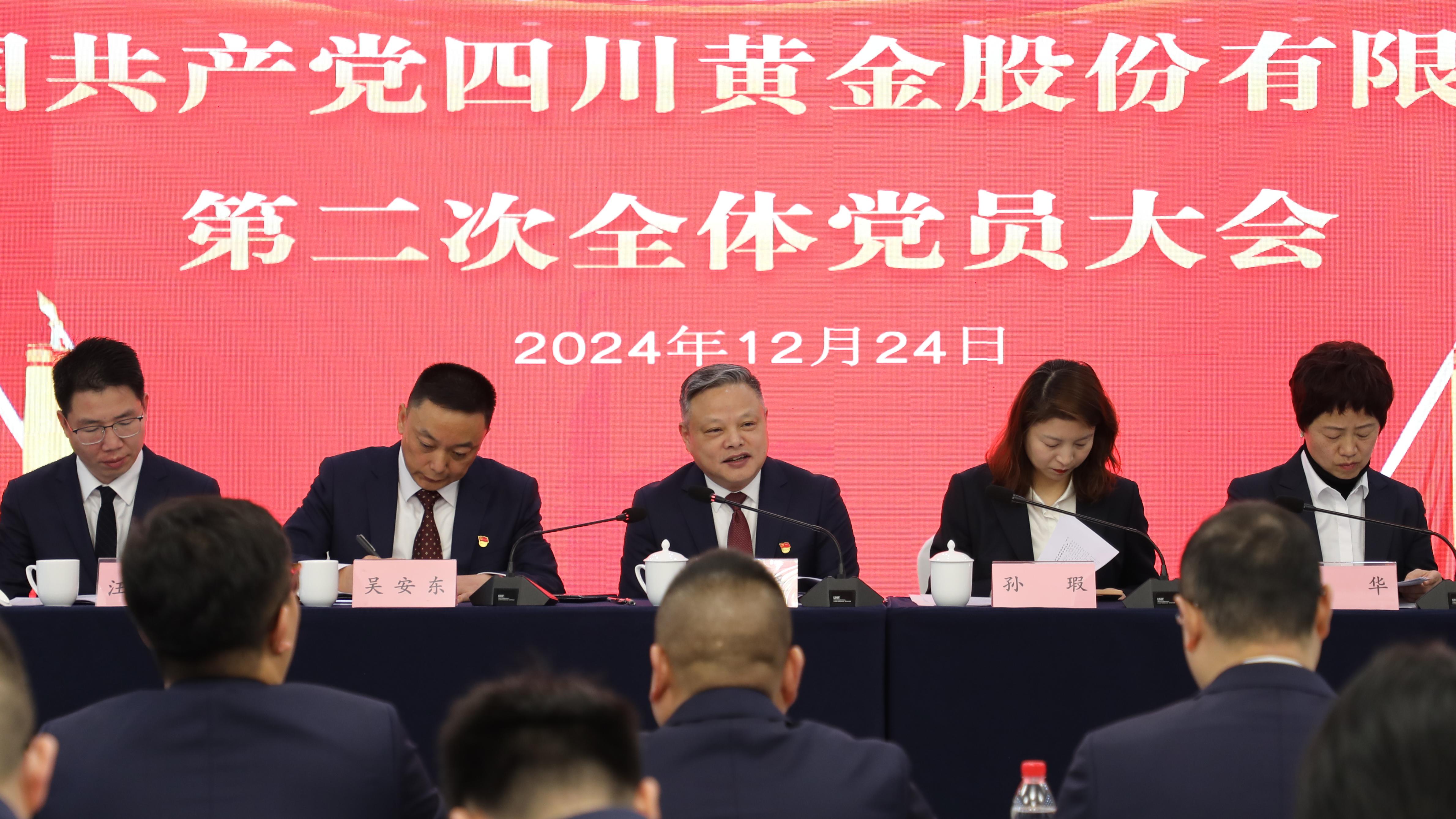 2024年12月24日,中國(guó)共產(chǎn)黨四川黃金股份有限公司第二次全體黨員大會(huì)在成都召開。會(huì)議由公司黨委副書記、副董事長(zhǎng)、總經(jīng)理吳安東主持,區(qū)調(diào)隊(duì)黨委副書記孫瑕,紀(jì)委書記、工會(huì)主席楊華到會(huì)指導(dǎo)。