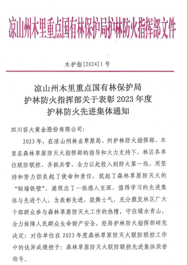 -----梭羅溝金礦榮獲“2023年度森林草原防滅火工作先進(jìn)集體”